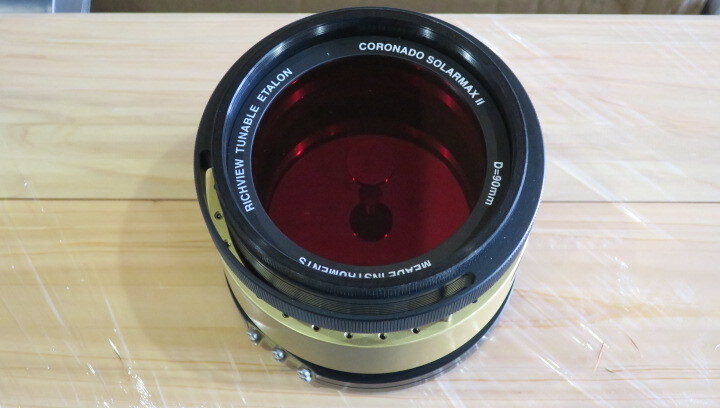 Hα太陽望遠鏡の最高峰 CORONADO Solar Max II 90ダブルスタックフィルターです。前キャップがありませんのでご注意ください。既にSolar Max 90望遠鏡をお持ちの方ならそのキャップが使えます。購入に際して可能であれば、SM90望遠鏡を拝見させていただきたいですが、お引き取りも兼ねて好天の時に持ってきていただければ、安心できます。
